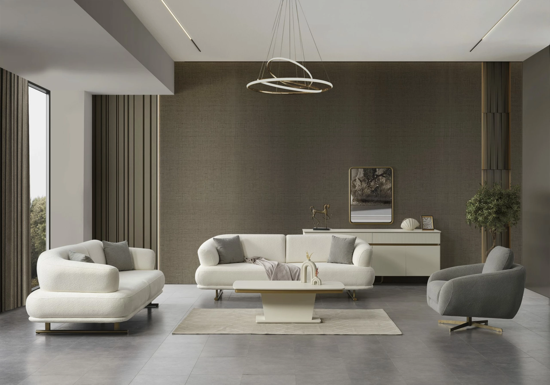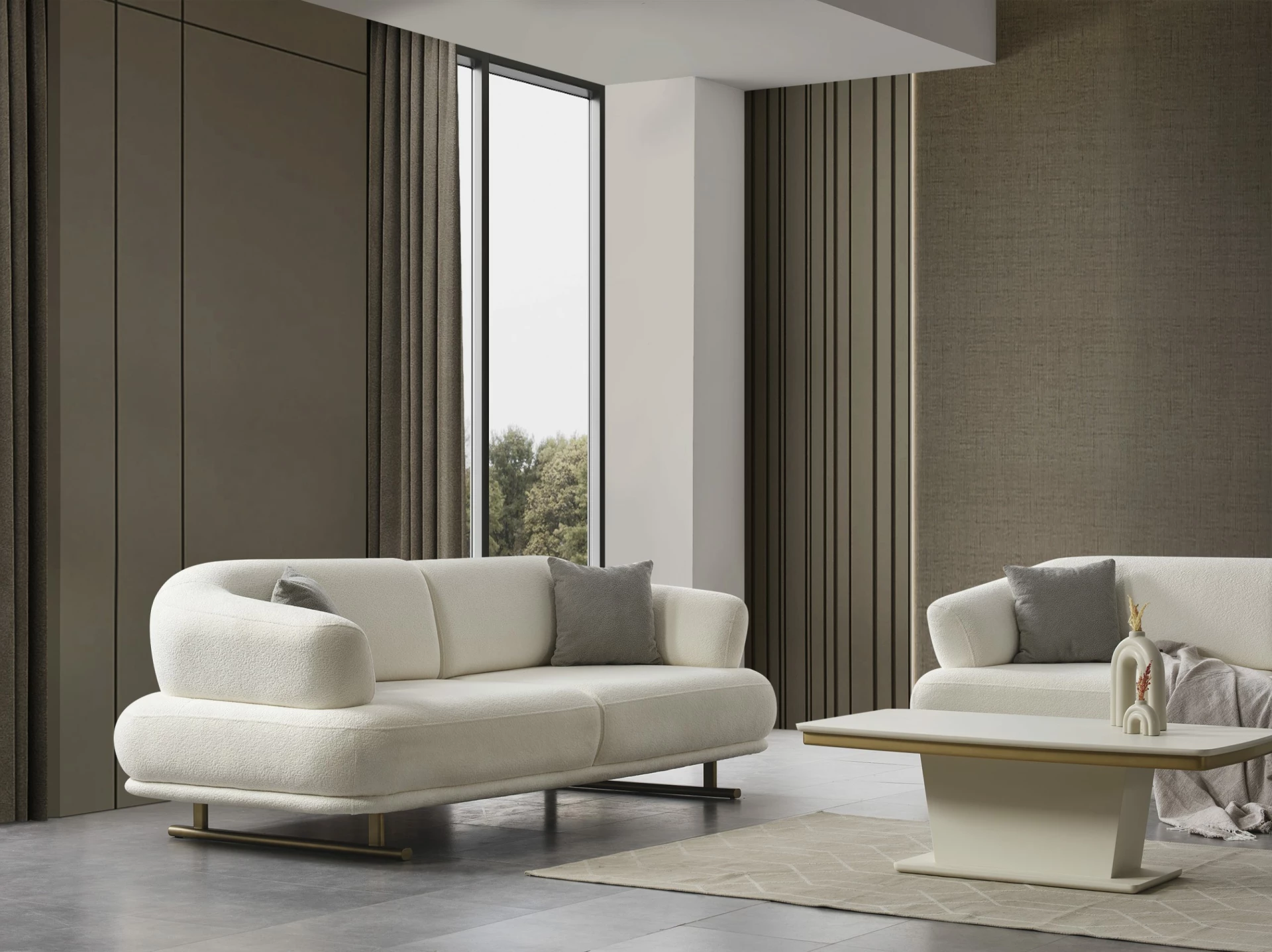 Gloria Koltuk Takımı, minimalist ve modern çizgilerle tasarlanmıştır. Zamansız stiliyle her türlü dekorasyon tarzına uyum sağlar ve yaşam alanlarınıza sofistike bir hava katar. Özenle seçilmiş renk ve kumaş seçenekleri, kişisel zevkinize ve evinizin dekorasyonuna uygun bir seçim yapmanıza olanak tanır. Modern tasarımın zerafeti ve konforu Gloria ile buluşuyor.
